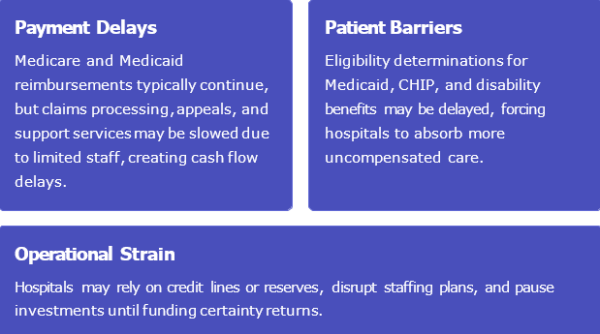 For hospitals, this doesn’t mean Medicare or Medicaid checks stop overnight, but it does mean that the administrative processes supporting these programs can slow down significantly, creating a ripple effect throughout the healthcare system.